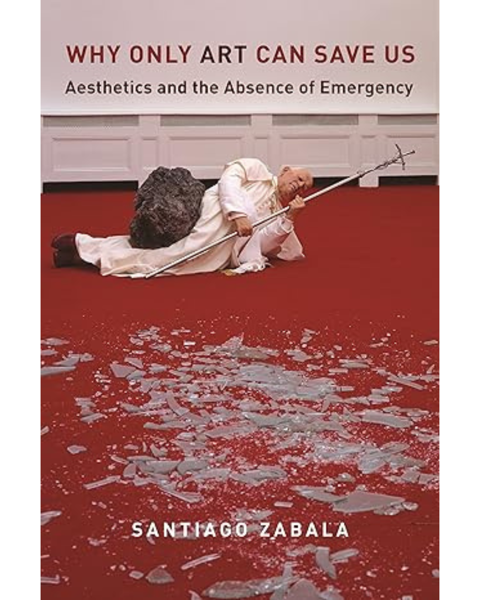 Mazzini opened by establishing Zabala as a long-standing collaborator and “friend of the community,” serving as one of èƽ’s Dissertation Directors and as an Independent Study Director. Currently, Zabala is a Research Professor of Philosophy at Pompeu Fabra University in Barcelona, and Mazzini describes his new book as “a much-needed inspiration” that invites reflection on responsibility, “engagement and a possible task” that we might want to embrace. Like Zabala’s earlier work, especially Why Only Art Can Save Us: Aesthetics and the Absence of Emergency, Mazzini suggests that this book quite strongly continues “a dialogue between the arts, artists and philosophers” (1.13-2.04; Fig. 2).